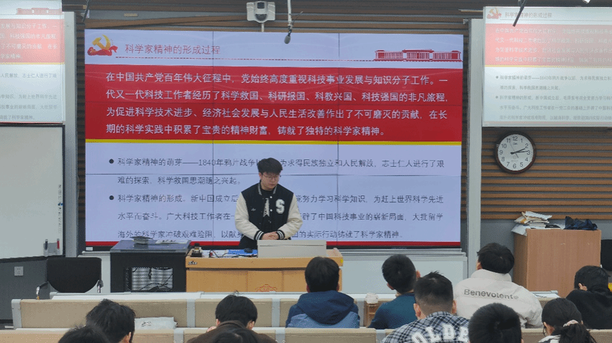 (通讯员  张国翔)为传承与弘扬科学家精神,11月25日,h漫 应用化学系研究生党支部在南校区举办“时代之声-弘扬科学家精神”主题宣讲活动。本次活动聚焦“航天精神的时代价值”“纳米能源的创新探索”两大主题,通过讲述钱学森的报国事迹王中林院士的科研历程,深刻阐释科学家精神的丰富内涵50余名党员和积极分子参加此次活动。