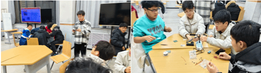 实操训练环节分阶段开展。首先组织新生进行万能板电路板焊接练习,掌握焊锡量控制、焊点成型等基础技巧;再逐步过渡至贴片电路板元器件焊接,重点训练精细操作能力。俱乐部骨干以分组指导的形式,对参训学生进行“一对一”技术帮扶,针对焊接温度把控、元器件定位等常见问题现场示范纠正,确保每位学生都能精准掌握操作要领,在学长们的指导下,参训学生熟练掌握了焊接过程中的种种细节和技巧。