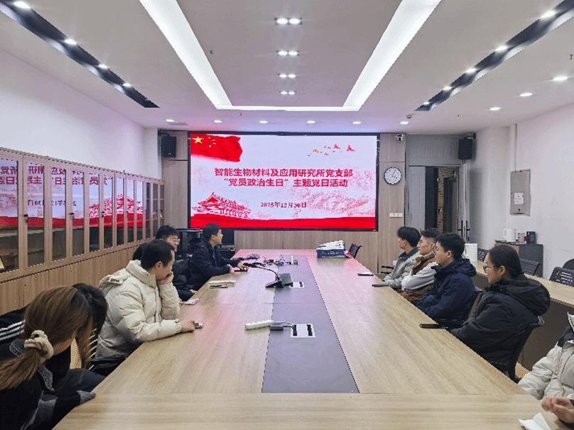 通讯员  唐颖 王湿龙为强化党员身份意识、筑牢理想信念根基,推动党建工作与科研业务深度融合,2025年12月30日,智能生物材料及应用研究所党支部举行“忆誓言初心  报国使命”主题党日活动。通过给支部党员过政治生日,回顾入党初心、重温入党誓词、分享成长感悟,进一步激发支部党员的责任感与使命感,凝聚科技报国的奋斗共识。活动由党支部书记董广志主持。