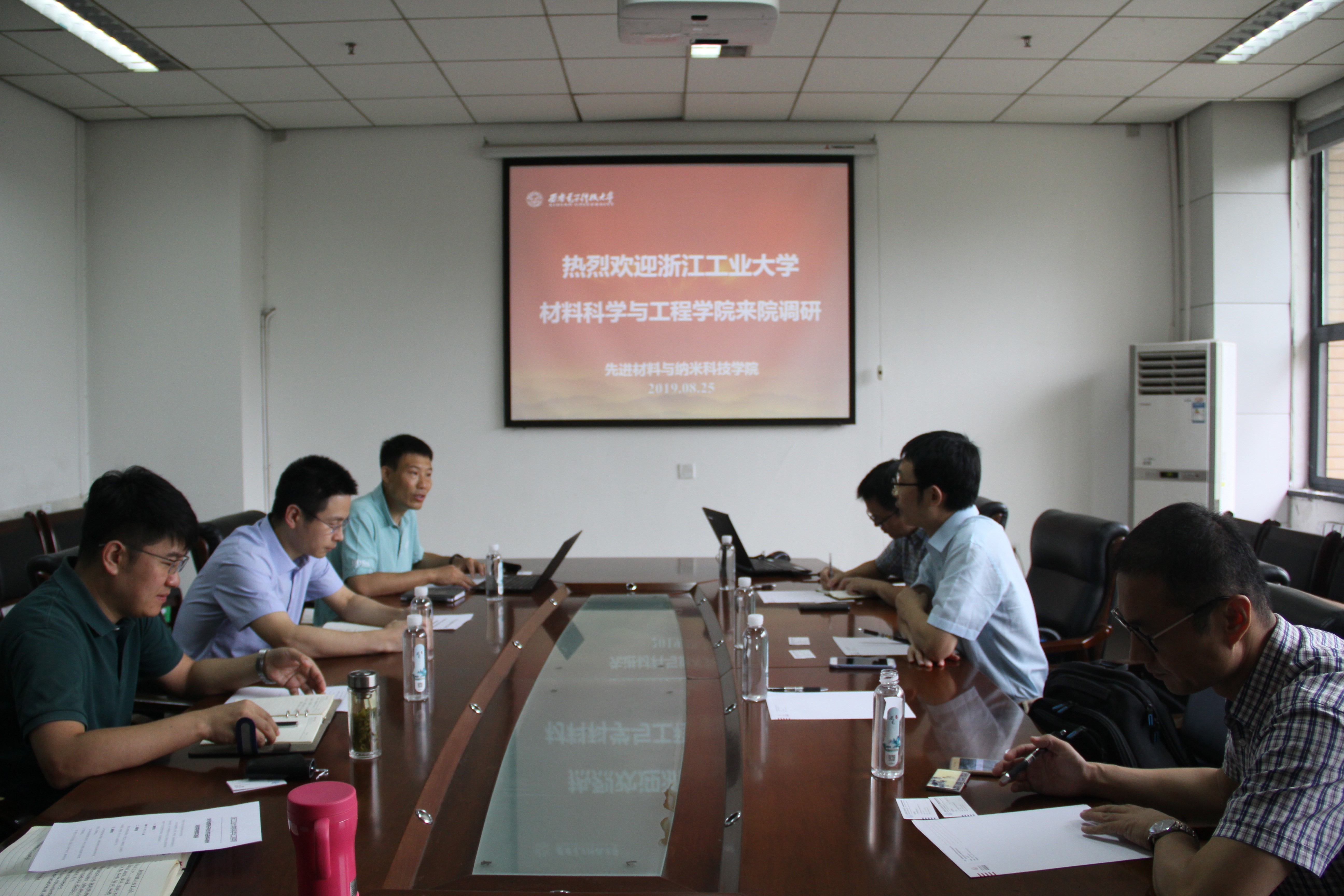 8月25日上午,浙江工业大学材料科学与工程学院副院长陶新永、实验中心主任杨晋涛、金属材料与表面工程研究所副所长唐谊平一行来院调研,学院党委书记卢硕、副院长杨如森、副院长高宝铜、青年教师吴巍炜一同参加了交流座谈会。