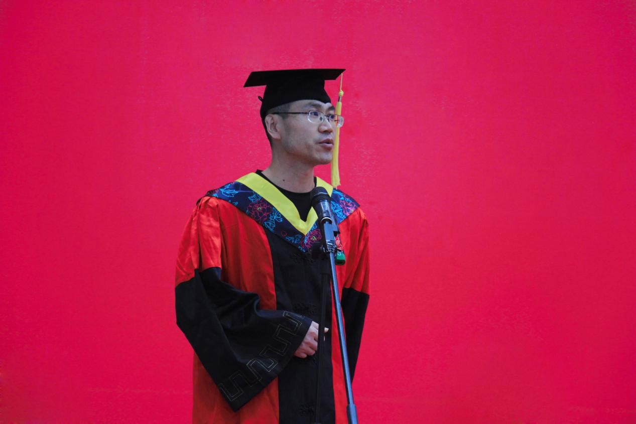 在热烈的掌声中,秦勇代表学院寄语毕业生,他祝贺同学们获得学位,对即将踏上新征程的同学们表示衷心的祝福,祝愿大家鹏程万里、大展宏图,期待大家在新的起点珍惜每一次机会,努力去实现自己的人生价值。随后,秦勇给同学们谈了三点叮嘱:一要志存高远。志向决定了今后人生的高度。希望同学们能够成为国家所需要的栋梁。二要胸怀宽广。视野的高远来自胸怀的宽广,有胸怀才能有高度,有高度才能有视野,有视野才能有远大的志向和为之不懈奋斗的毅力。同时,只有胸怀宽广才能随时看到自己内心的不足,才能真正的做到“吾日三省吾身”,才能不断进步;三要内心强大。成长的道路上不可能一帆风顺,国家的发展需要同学们有能力克服各种困难,这就需要一个强大大的内心,需要坚毅的品质。最后,他嘱托同学们多多关注学院发展,h漫