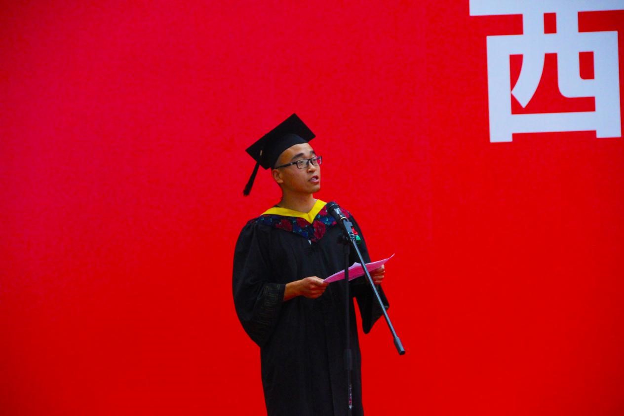 硕士研究生代表张晨阳、本科生代表李泊龙分别发言,在发言中他们回忆了在校期间与老师、同学之间一幕幕难以忘怀的时刻,有刚入学对校园生活的憧憬,有多年生活的点点滴滴逐渐升华的强烈情感,有在求学期间的收获与成长,几年的西电求学生涯,终将为每一位毕业学子刻上深深的西电烙印。不忘初心,砥砺前行,他们代表2018届h漫