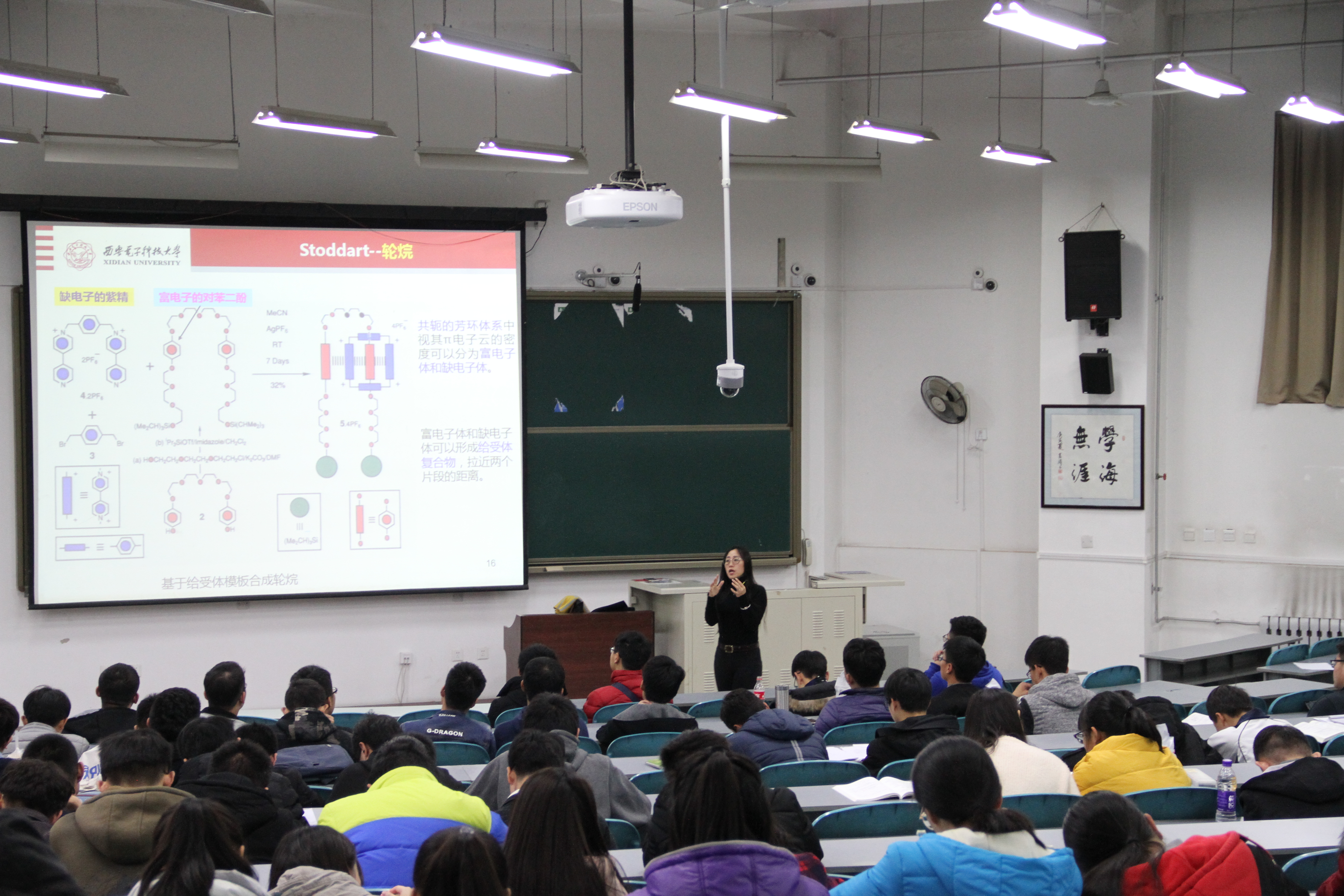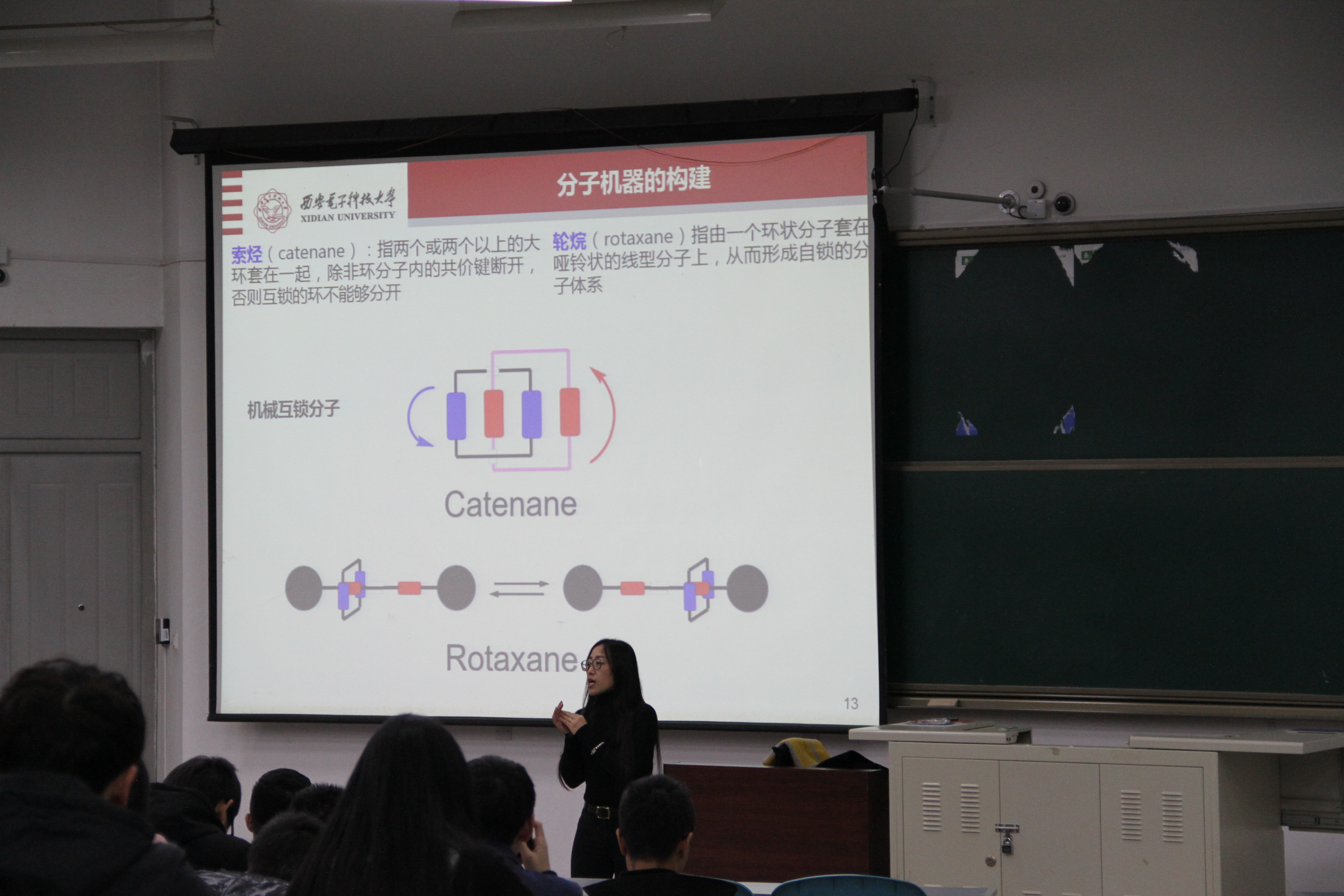 讲座伊始,白晓霞从2018年化学诺贝尔奖获得者事迹讲起,再转述到对化学领域三大里程碑式成果的介绍,顺其自然地引出了本次讲座的主题——“分子机器”,主题的引入方式让同学们对报告产生了浓厚的兴趣。