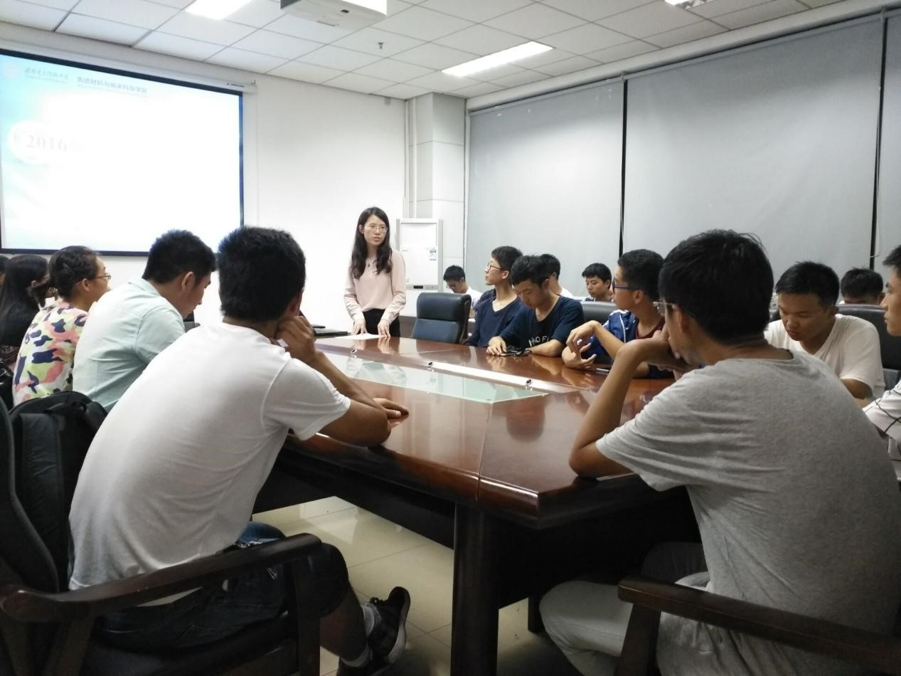 会议伊始,周雪皎老师与大家进行了简单的认识,并以一位学姐身份激励大家要不忘初心,珍惜大学时光,做好生活规划,走好大学每一步。她接着谈到了“大学毕业后的去向”,就大学生涯规划与同学们展开深入而热烈的讨论,同学们与周雪皎老师进行很好的互动交流,她告诫学生从大一起就要着眼于自我的长远发展,制定科学合理的学涯规划,脚踏实地过好自己的大学生活,并就大家今后的发展推荐了相关专业考研的国内高水平院校与就业的世界知名企业,从而使同学更加明确了未来的发展方向。然后就专业学习和大学生活为同学们进行了精彩的讲解,对专业的课程设置、培养方案进行了详细介绍,建议同学们要建立专业自信和培养科研兴趣,使同学们对专业发展有了更新的认识。谈到大学生生活,她叮嘱大家切勿沉迷于网络游戏,每个人都应以积极、健康、阳光的态度学习生活,加强自我管理,不断提高自我责任感、使命感与整体素质,最终成为社会和国家的有用之才。