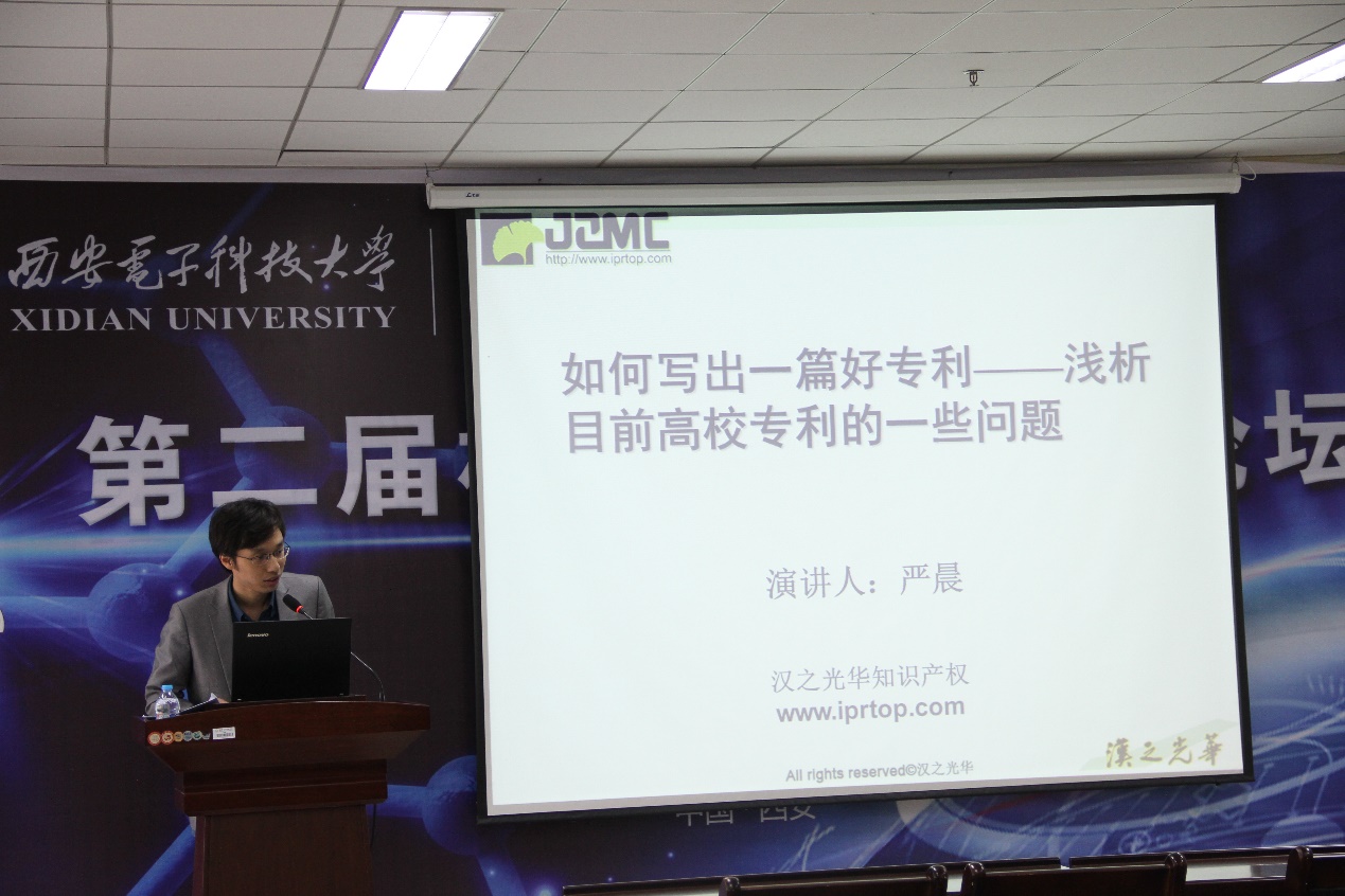 接着,来自上海光华专利事务所的副经理严晨围绕目前高校专利申请普遍存在的专利保护范围过小、专利权本身不稳定等问题,为在场师生带来题为“如何写出一篇好专利——浅析目前高校专利的一些问题”的报告。首先,严晨就影响专利价值的几个因素,如专利的技术创新高度、专利的稳定性、专利要求的保护范围进行等进行简单介绍。接着,严晨就“专利申请文件的撰写与专利保护范围的关系”、“专利申请文件的撰写与专利稳定性的关系”、“专利申请确权过程的处理不当与专利保护范围的关系”和“专利申请文件本身在撰写过程中的缺陷”四个方面进行详细的讲解,并结合实际案例浅析目前高校专利普遍存在的一些问题,提供一些法院的判例供广大师生参考,由此引发大家的思考。