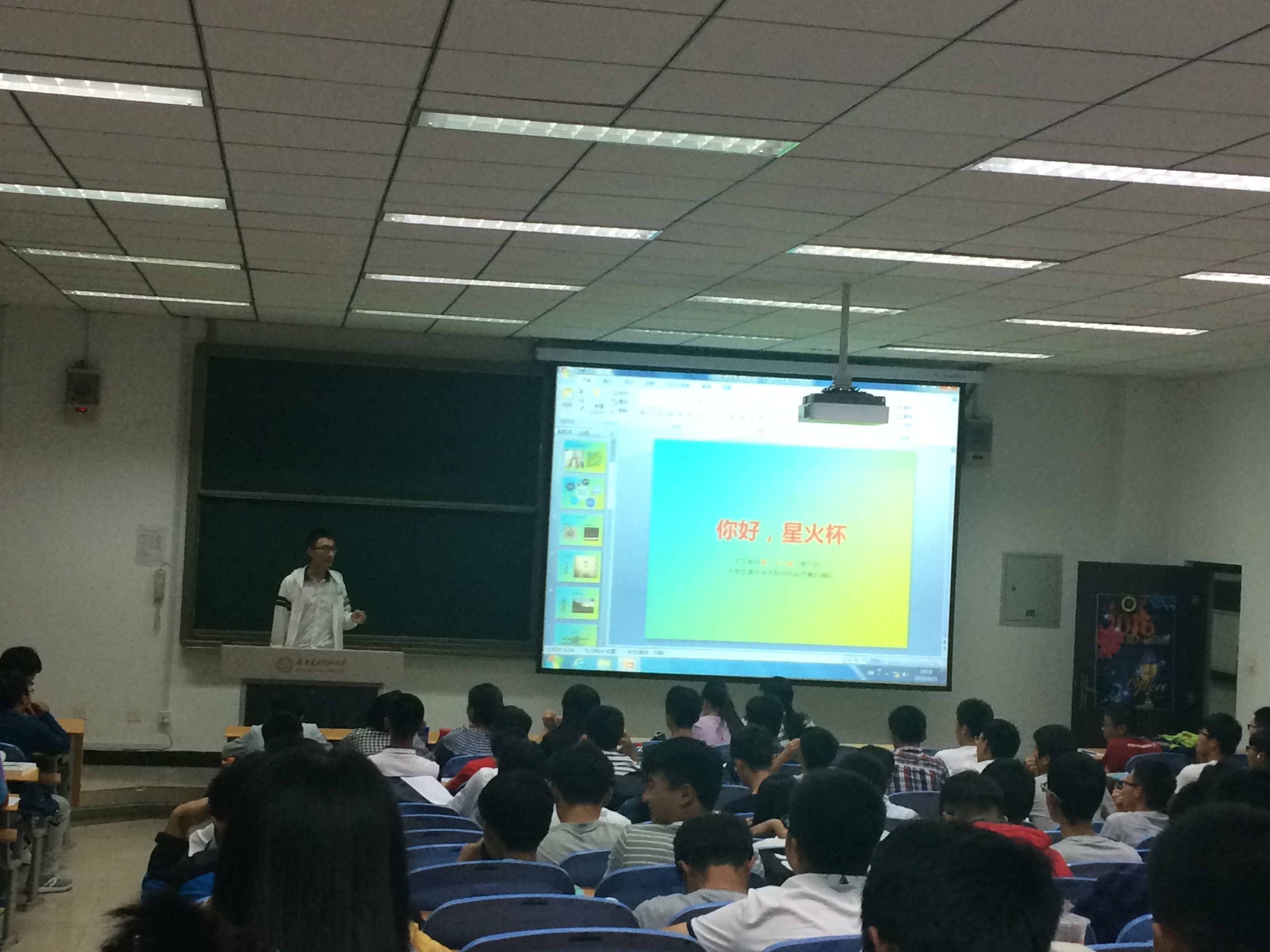 科协在信远一区407教室举办了“星火杯”宣讲会。宣讲会邀请了我院科协主席王杰,副主席王健主讲,2016级全体新生参加了此次宣讲会。