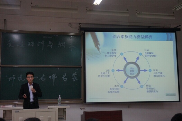 首先,刘佳瑜老师给同学们介绍了他的大学生活来活跃现场气氛。随后,他将本次讲座分成两部分:内功修炼和外功修炼。内功修炼是指自我的提高,他用互动的方式给我们介绍的目标管理法,所谓目标管理法有三个要素:目标、具体、惩罚机制。随后,他给同学们讲了如何排遣郁闷的心情,如跟朋友倾诉以及比较等方法,可以很有效的消除郁闷的心情。接着,进入了外功修炼的部分,他总结道:专业对应职业、职业对应技能、技能对应时间。最后,他给同学们提出三点建议:读书、读人、读事。建议同学们想一想自己做的事有没有用,能不能给自己的未来带来机会,如果不能,就尽早放弃。