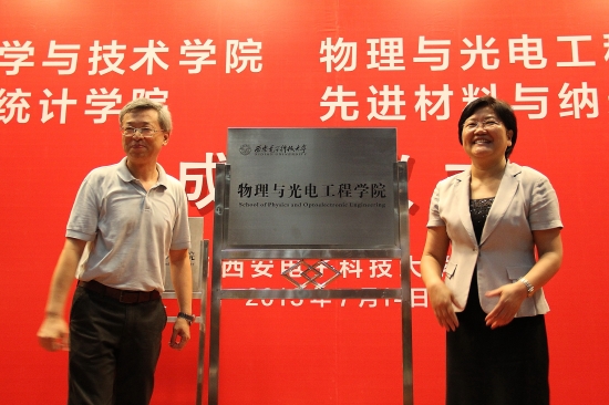 校长郑晓静、中国科学院西安光学精密机械研究所赵卫所长共同为物理与光电工程学院揭牌