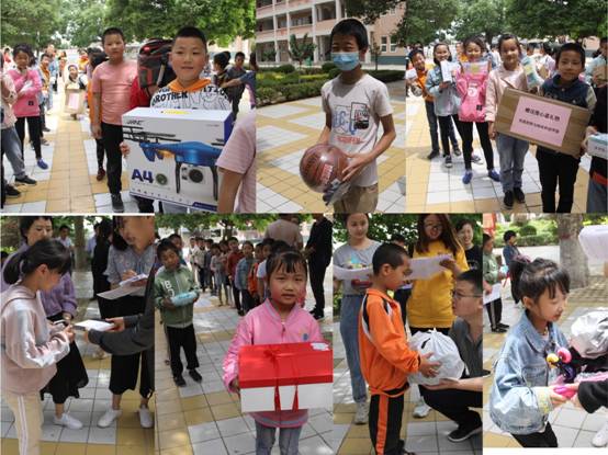 最后在学校广场举行了捐赠仪式。根据学院发起的“点亮微心愿,共筑大梦想”的活动方案,共收到85位孩子们的微心愿,学院教职工积极认领,共有61名教工精心准备微心愿礼物95件,其中有学生文具、课外书籍、球类、学习资料以及无人机等等。一些老师还专门书写了鼓励的留言小卡片。仪式上,师生代表亲手把学院教职工的微心愿礼物交到每一位学生手中,并宣读了部分教工的祝福语,鼓励同学们刻苦学习、努力奋斗,争做全面发展的好学生。之外学院还捐赠了消毒洗手液、一次性医用口罩和文具、显微镜等物资。校长李文宏代表全体师生对h漫