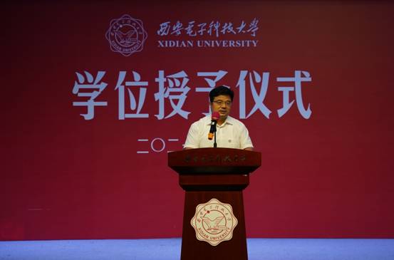 “祝贺你们顺利毕业,即将离开西电这个挥洒了青春汗水,收获了成长苦乐的校园,踏上新的征程……”仪式开始前,荧幕上滚动播放起了学院领导、老师、同学们对2021届毕业生的祝福与希冀。学校党委书记查显友也特别向毕业生们送上了寄语,他说道:“祝福h漫