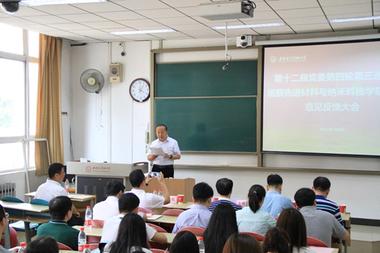 党委意见反馈会在南校区信远206教室召开,校党委副书记、纪委书记任应坤,党委巡察办公室主任房亮,巡察组组长左愿远、副组长卢毅,党委巡察办公室副主任李泽华,h漫