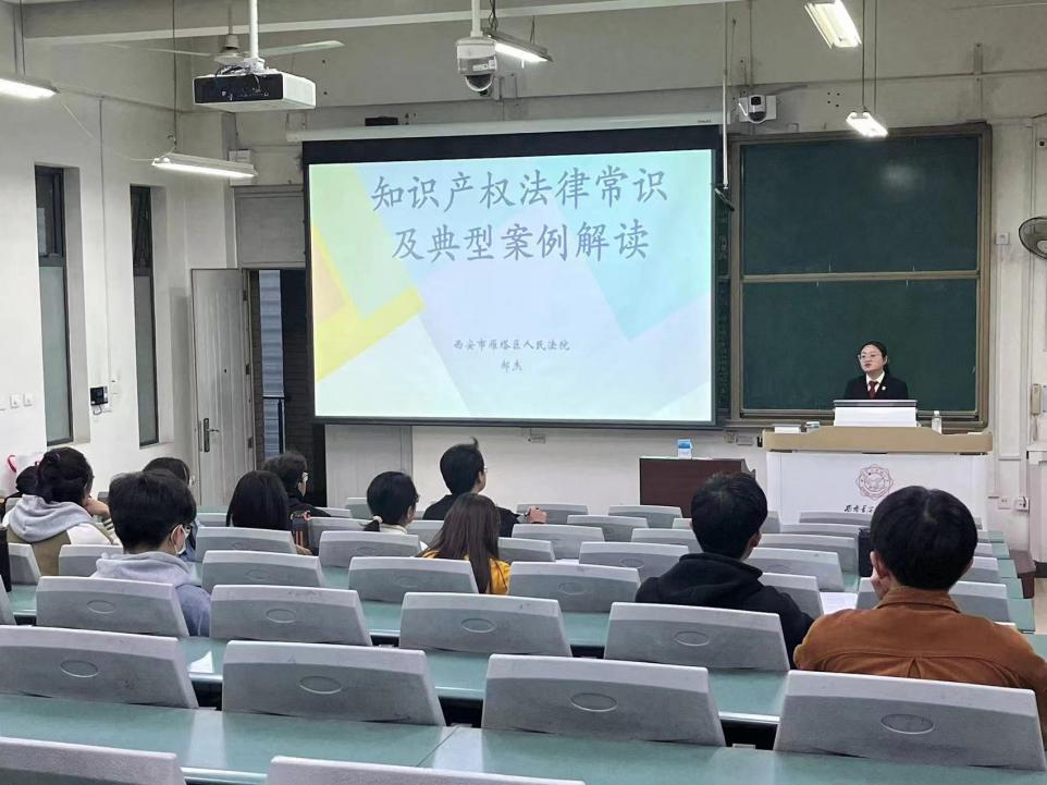 邀请西安市雁塔区人民法院郝杰法官,在南校区举办题为“知识产权法律常识及典型案例解读”的报告。报告会由学院董广志副教授主持,学院部分师生参加。
