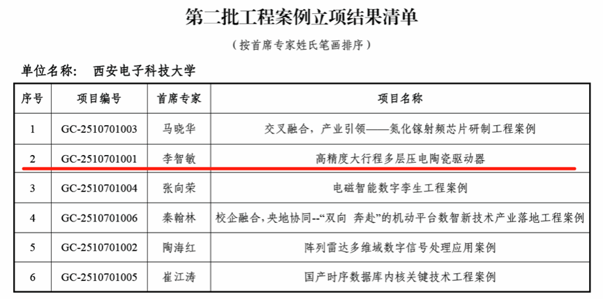 近日,教育部学位与研究生教育发展中心公布第二批工程案例立项结果,先进材料与纳米科技学院李智敏教授负责的《高精度大行程多层压电陶瓷驱动器》案例获得立项,学校共有6项案例成功入选。