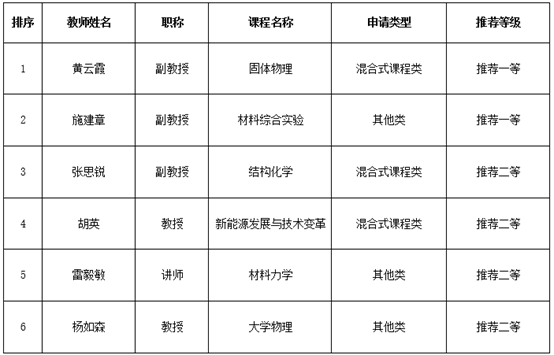 根据《h漫 关于评选2021年度本科优质教学奖的通知》,经教师个人申报,学院评审组评审,教指委会审议,决定推荐以下6名教师参加学校终评。