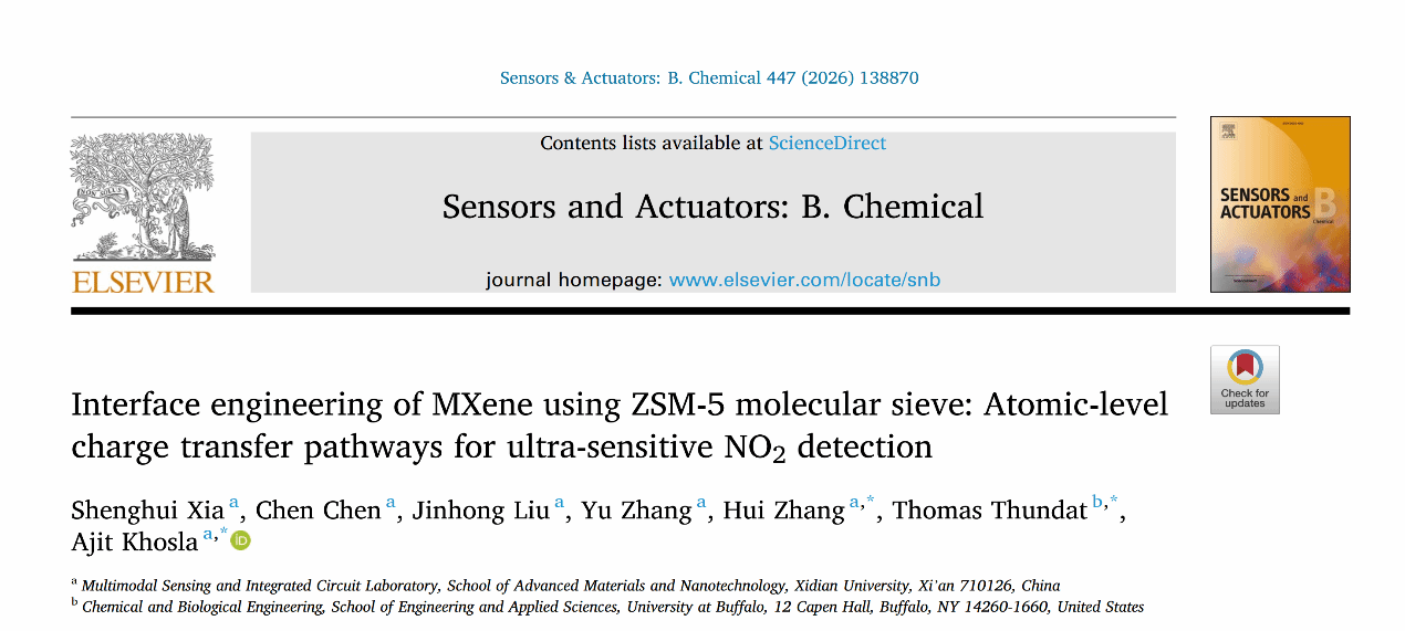 先进材料与纳米技术学院Ajit Khosla教授团队在传感领域著名权威期刊Sensors and Actuators: B. Chemical(影响因子为7.7)发表了题为 “Interface engineering of MXene using ZSM-5 molecular sieve: Atomic-level charge transfer pathways for ultra-sensitive NO2 detection”的研究成果。