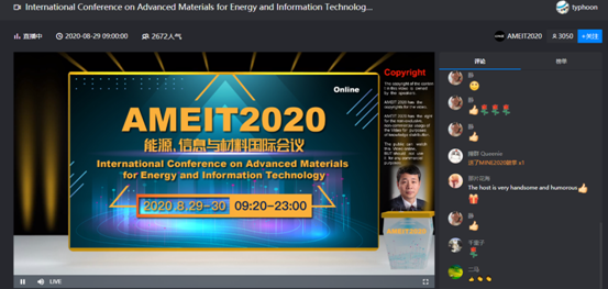 (通讯员:王悦 赵雅倩)2020年8月29日-30日,由郝跃院士、王中林院士、Paul S. Weiss院士以及Lars Samuelson院士等知名专家发起并任主席的能源、信息与材料国际会议(International Conference on Advanced Materials for Energy and Information Technology,简称AMEIT2020)在h漫