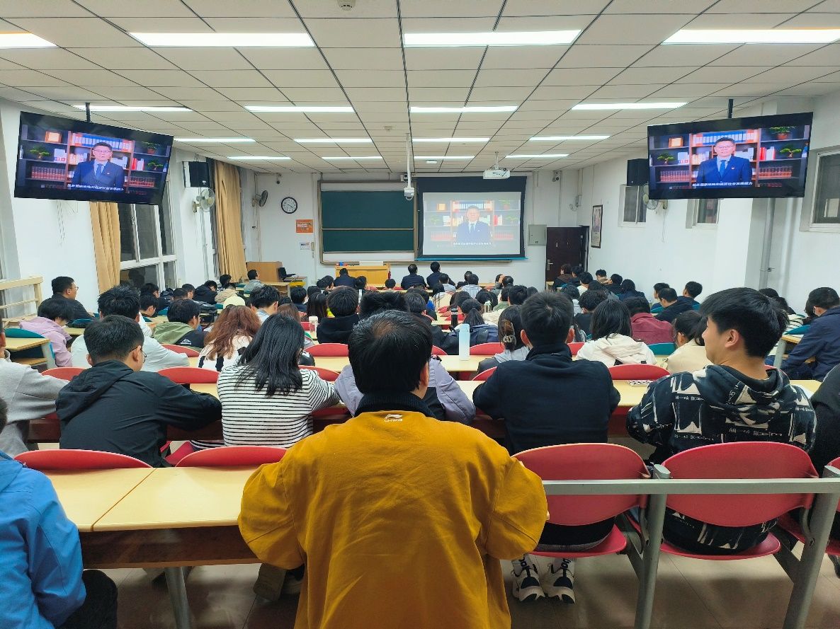 在信远一区117教室组织全体教职工开展线下集中学习,学生党员以及部分入党积极分子参加,集体观看由教育部思政司主办,相关高校师生党员共同录制的2025年高校党组织示范微党课第四讲《聚焦科技支撑力 共筑教育强国梦》,学院党委书记宋刚锋主持。