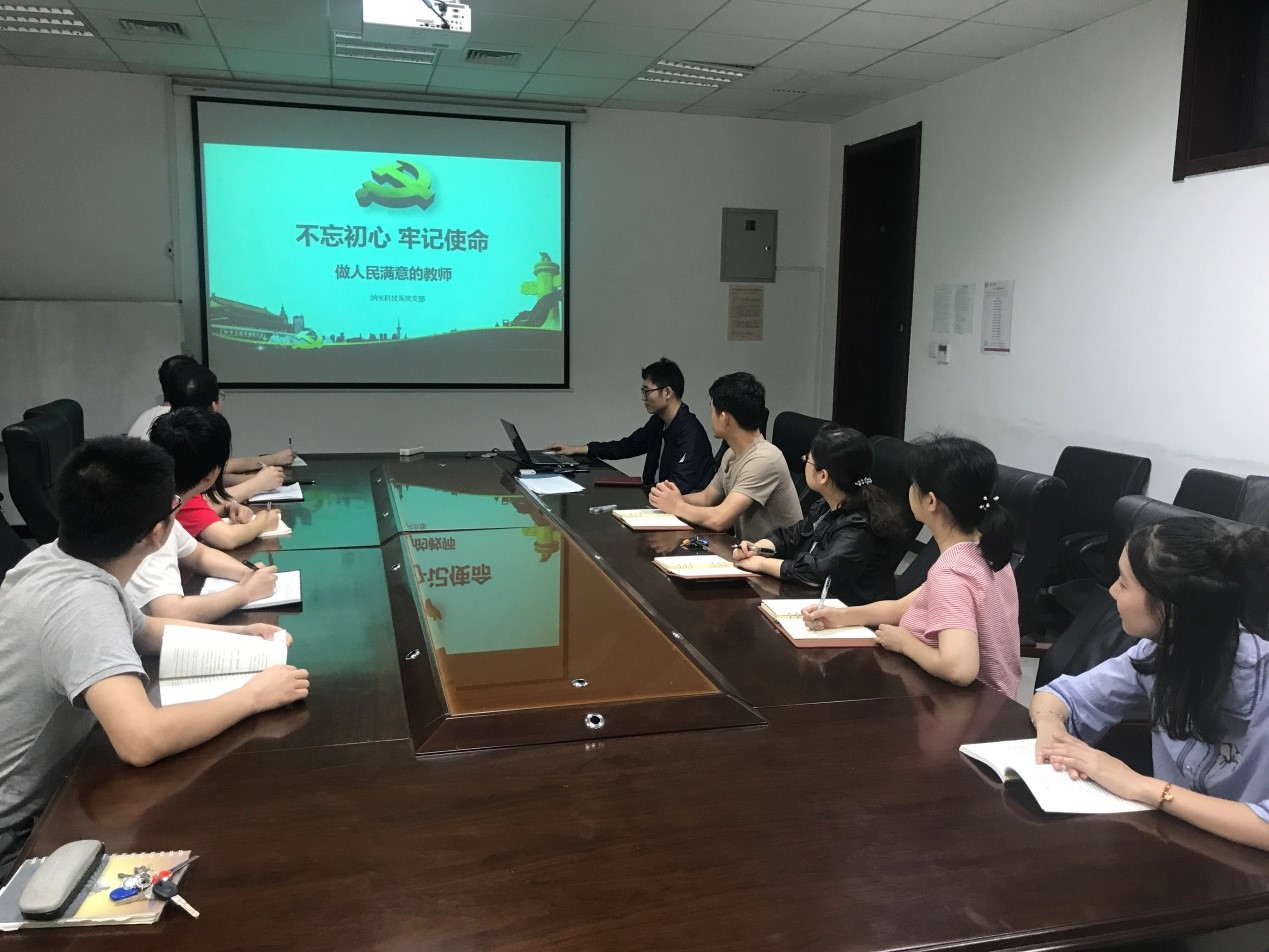 系党支部书记张鹏主持会议并宣读了学院“不忘初心、牢记使命”主题教育实施方案,大家献言献策,一起讨论了系党支部的学习方案,接着由张鹏进行了“不忘初心、牢记使命——做人民满意的教师”为主题的专题党课教育。