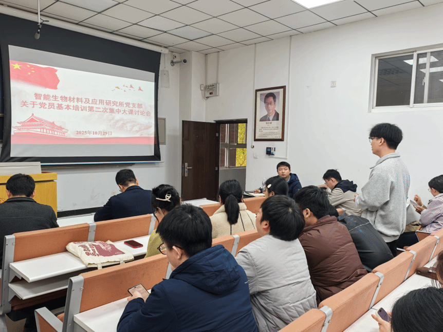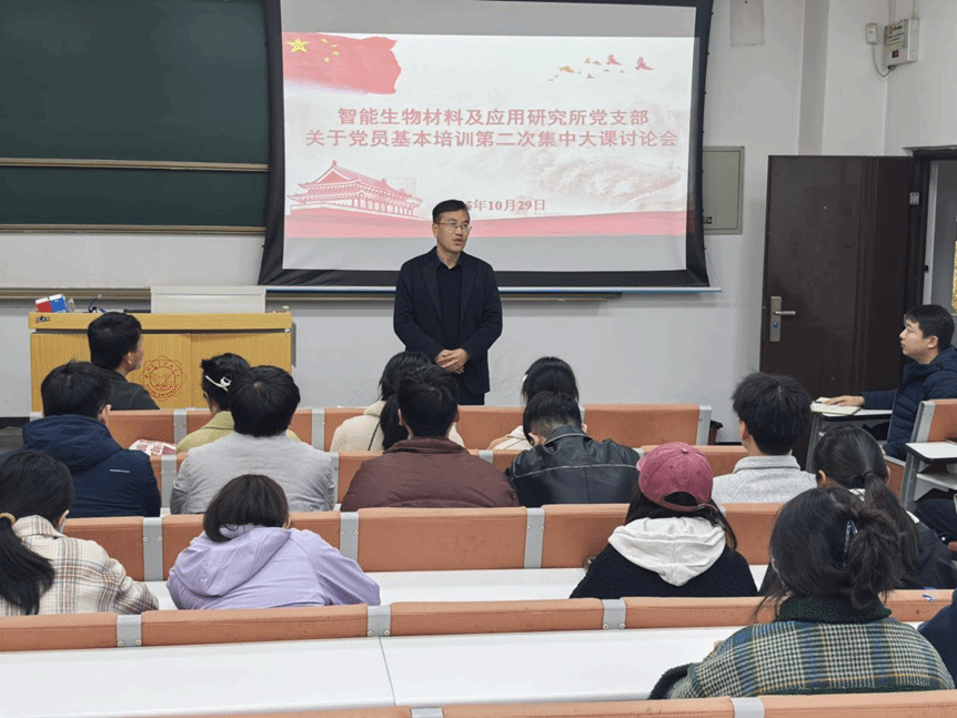 智能生物材料及应用研究所党支部召开党员大会,组织开展集体学习暨主题党日活动。学院党委书记宋刚锋应邀为支部讲授专题党课,活动由党支部书记董广志主持。