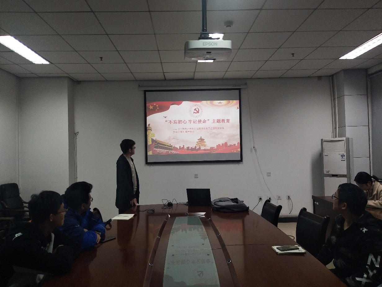 本科生党支部组织全体党员召开“不忘初心、牢记使命”主题教育集中学习会,专题传达学习《中国共产党第十九届中央委员会第四次全体会议公报》精神。