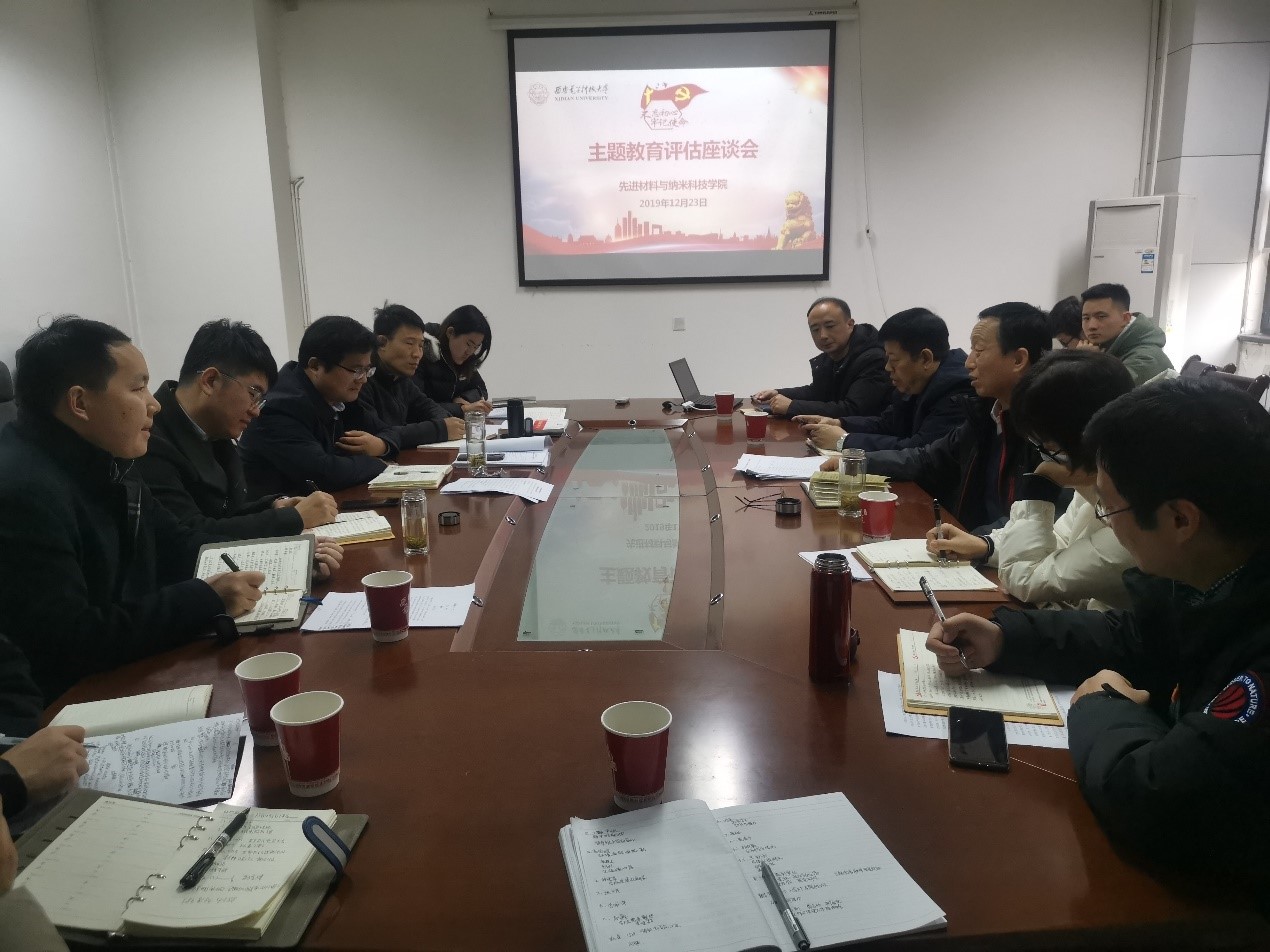 卢硕就学院主题教育开展情况和取得成效进行总结汇报。在理论学习方面,除规定内容外,学院党委专门汇编了“不忘初心、牢记使命”主题教育学习资料。同时,丰富了学习内容,例如邀请党校老师讲党史、参观红色爱国基地、参观校史馆、应知应会测试、讲党课、读书会等多种形式,增强党员的积极性,提高党员党性修养,厚植爱国主义情怀。积极主动进行学习强国线上学习,做到了理论学习与工作实践相结合,线上学习与线下学习二者相统一。班子成员深入调研,认真检视问题,扎实整改,推动学院发展。在学院领导班子建设方面,学院增设一名主管教学副院长,加强了班子力量。在支部建设方面,撤销了软弱涣散的党支部,本科生增设副书记,加强了支委班子力量。同时解决了师生关心的一些问题,形成了长效机制。实验办公场地优化初见成效,实验平台运行规范化,面向本科生形成“实验室开放日”制度。通过学院运动俱乐部的形成,不断加强师生之间交流。