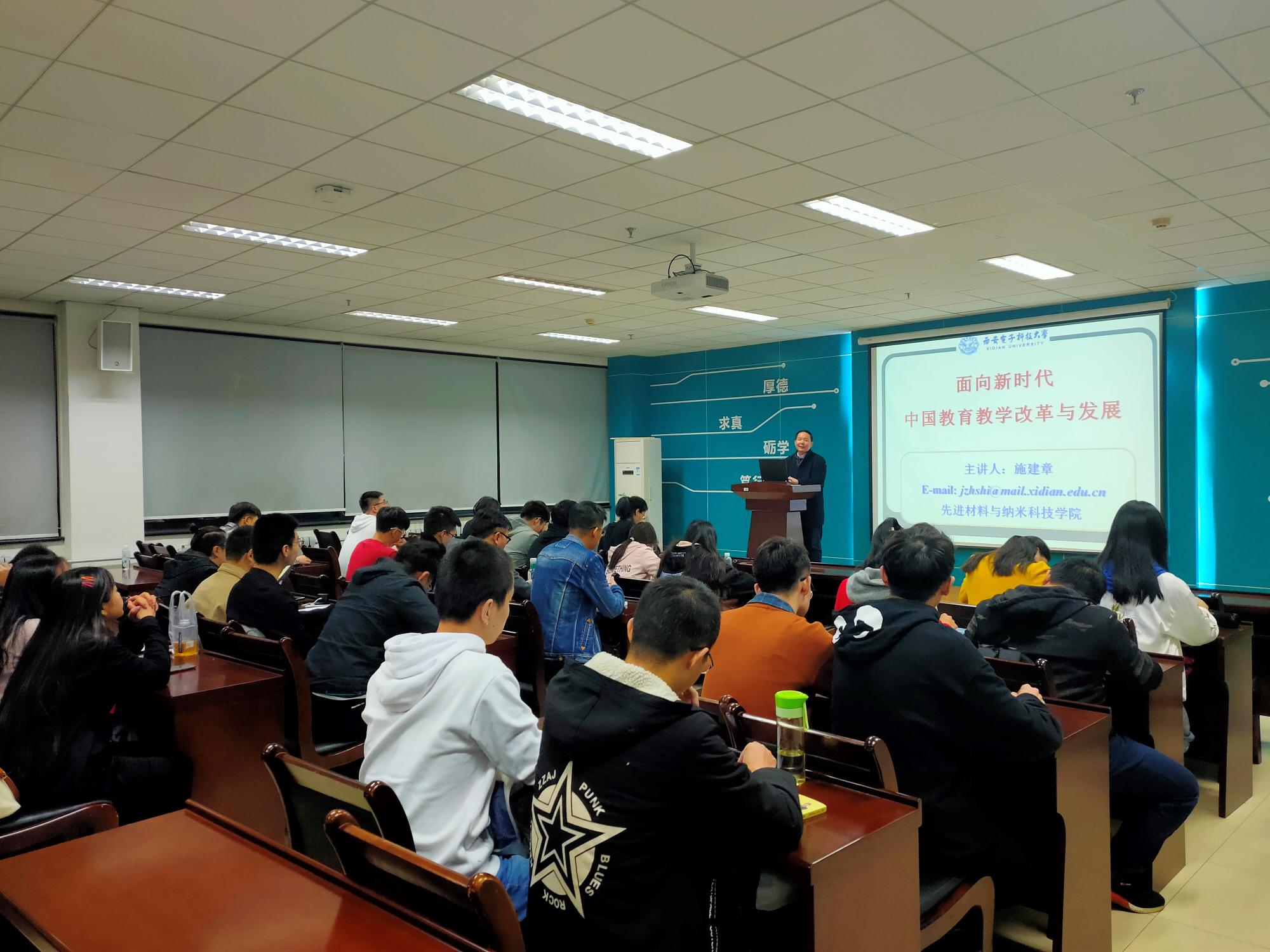 党委开展“不忘初心、牢记使命”主题教育实施方案,2019年10月30日晚上,学院党委委员施建章老师为本科生党支部讲了一堂内容新颖的党课,主题为《面向新时代中国教育教学改革与发展》,本科生支部党员参加学习。