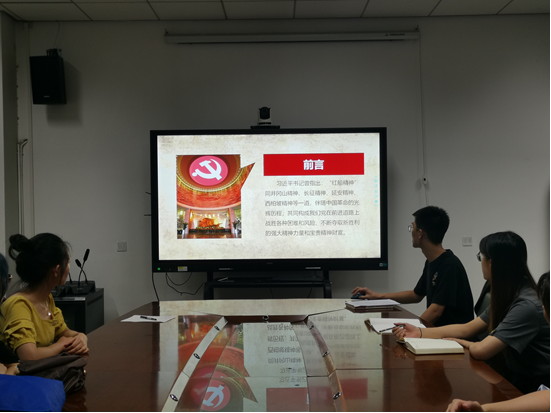 材料科学与工程系硕士研究生党支部在南校区G-119会议室进行书记讲党课活动,支部书记刘瑞宇讲述“不忘初心 勇立潮头,弘扬新时代红船精神”主题党课。
