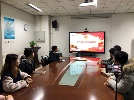 (通讯员 李逸君)中国共产党第十九届中央委员会第六次全体会议,于2021年11月8日至11日在北京举行,习近平总书记作重要讲话。11月11日,本科生支部党员通过观看当晚《新闻联播》,学习《中国共产党第十九届中央委员会第六次全体会议公报》,迅速掀起学习十九届六中全会精神的热潮。11月12日上午,本科生支部在C104组织集中观看了党的十九届六中全会新闻发布会直播。会后,同志们感触良多,并开展热烈讨论。