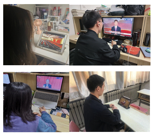 各党支部、学院团委通过线上和线下相结合的方式,组织师生通过电视、互联网和手机客户端等形式观看直播,认真学习领会习近平总书记的重要讲话精神。