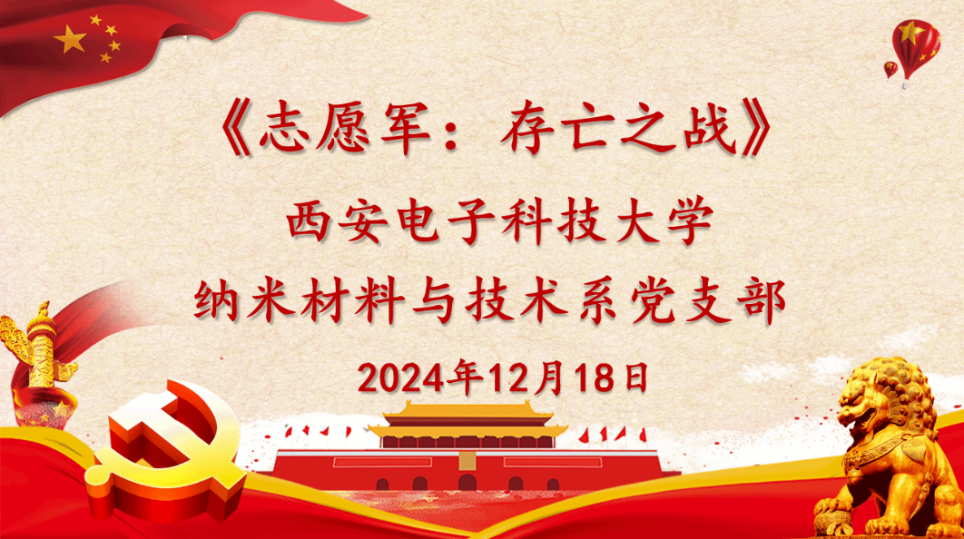 通讯员(李晓波)为深入贯彻党的二十大精神,强化党员的初心与使命,2024年12月18日,在周益春教授、程远副院长和王庆毅组织员的带领下,纳米材料与技术系党支部开展了“不忘来路初心如磐,风华正茂敢为人先”主题党日活动。全体党员共同观看了《志愿军•存亡之战》的电影。影片聚焦抗美援朝战争中关于生死存亡的一场战役—铁原阻击战。随着电影画面的展开,那段波澜壮阔、可歌可泣的历史仿佛重现眼前。为了完成任务,志愿军63军189师的战士把自己变成一根钉子,牢牢钉在阵地上;1营阵地上,教导员李想立下“一步也不会再退”的誓言,死守阵地;炮火连天中,一家三口在战场上团聚,让这个因战争分离的小家更为亲密......