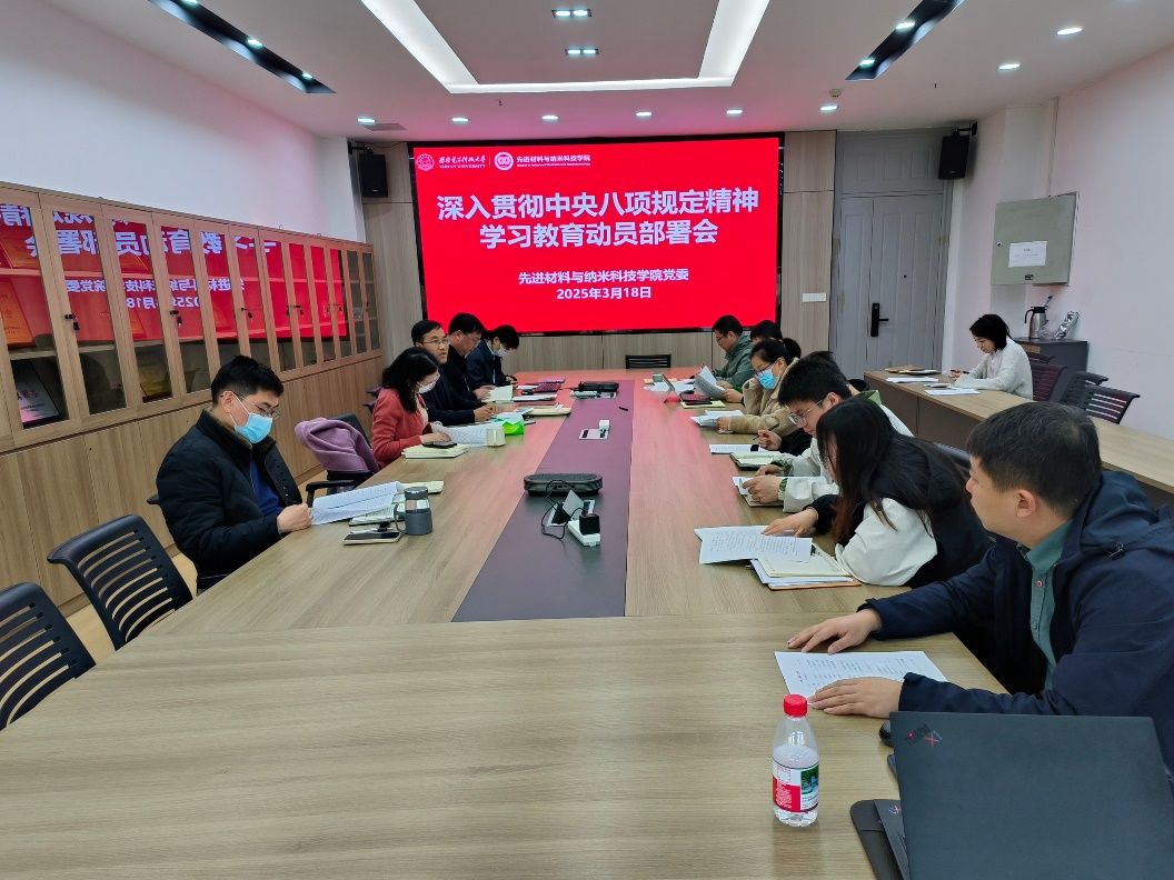 会议学习传达了中央党的建设工作领导小组会议精神、中央关于在全党开展深入贯彻中央八项规定精神学习教育的通知相关要求,以及学校党委深入贯彻中央八项规定精神学习教育实施方案,动员部署学院学习教育工作。