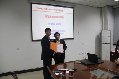 华山学者兼职教授聘书,并对张教授表示热烈的欢迎和衷心的祝贺。张教授表示,他很乐意与西电师生进行深入的学术探讨,他将经常来西电开展学术交流与合作,为我校的学科发展、科学研究和人才培养做努力。张文华教授的到来必将有助于我院学科的进一步发展,对我校材料学科人才的培养产生有力的促进作用。