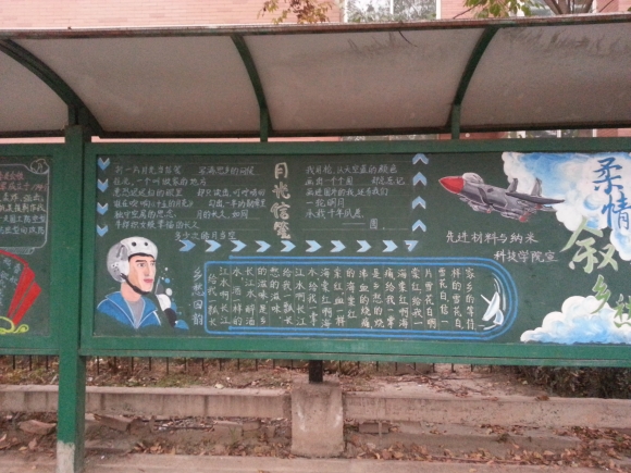 以“壮志凌云战苍穹,柔情舞空叙乡愁”为主题的黑板报荣获一等奖。