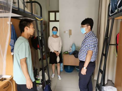 在2018级学生宿舍,副院长高宝铜、组织员王庆毅仔细询问了疫情期间学生的学习生活情况,针对大家返校后遇到的问题和困难提出了切实可行的建议,并鼓励学生尽快适应常态化疫情防控要求下学习生活节奏,调整作息安排,以崭新的面貌投入到新学期的学习生活中。