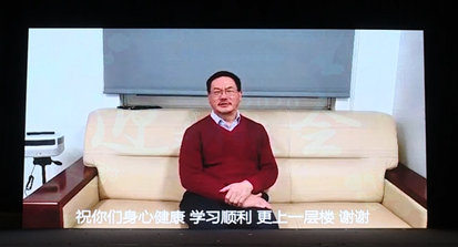 的名誉院长王中林院士也以视频的形式为迎新晚会送来了祝福。并从生活学习等方面对同学们提出了几点希望。他不仅希望同学们能利用学校的资源好好学习专业知识,还希望同学们能加强身体锻炼,保持身心健康。