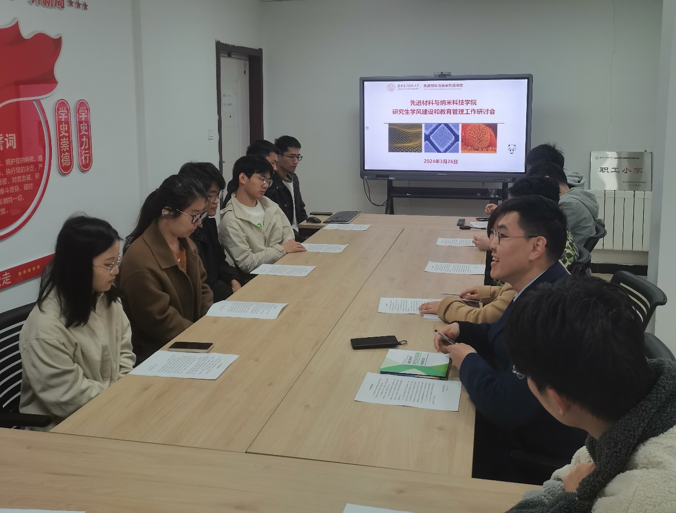 会上,刘男表示,在优良学风创建过程中,党员同志应充分发挥先锋模范作用,敢于“亮身份、践承诺、树形象”,以身作则、引导带领同学们养成良好的学习科研习惯,在全院形成争先创优的良好氛围。
