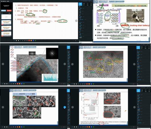 尽管直播期间,教学过程有种种不便之处,但是张老师的教学内容和要求并没有因此而缩减和降低。在线上课程讲授过程中,通过分享本课题组和国内知名企业合作案例、顶级刊物的最新成果,让学生从理论知识出发,了解最新的企业技术需求和学科研究前沿动态。比如,在讲授锂离子电池正极材料钴酸锂结构特点与电化学性能关系的理论知识后,通过与学生分享本课题组和振华新材料公司的合作课题,展示了钴酸锂正极材料相变过程、容量衰减的微观机制,加深学生对理论知识的深入理解;进一步引导学生阅读行业通过掺杂改性来稳定钴酸锂结构、抑制相变、提高电化学性能的新成果(比如ACS Nano,Nano Energy等国际期刊)。这种教学模式,引导学生实现了“书本的理论知识”到“企业实际需求”再到“最新科学前沿”的贯通,让课本理论知识能够落地到前沿企业,进而萌芽发展指导新的研究,践行“科研反哺教学”,获得了良好的教学效果,得到了学生的一致好评。