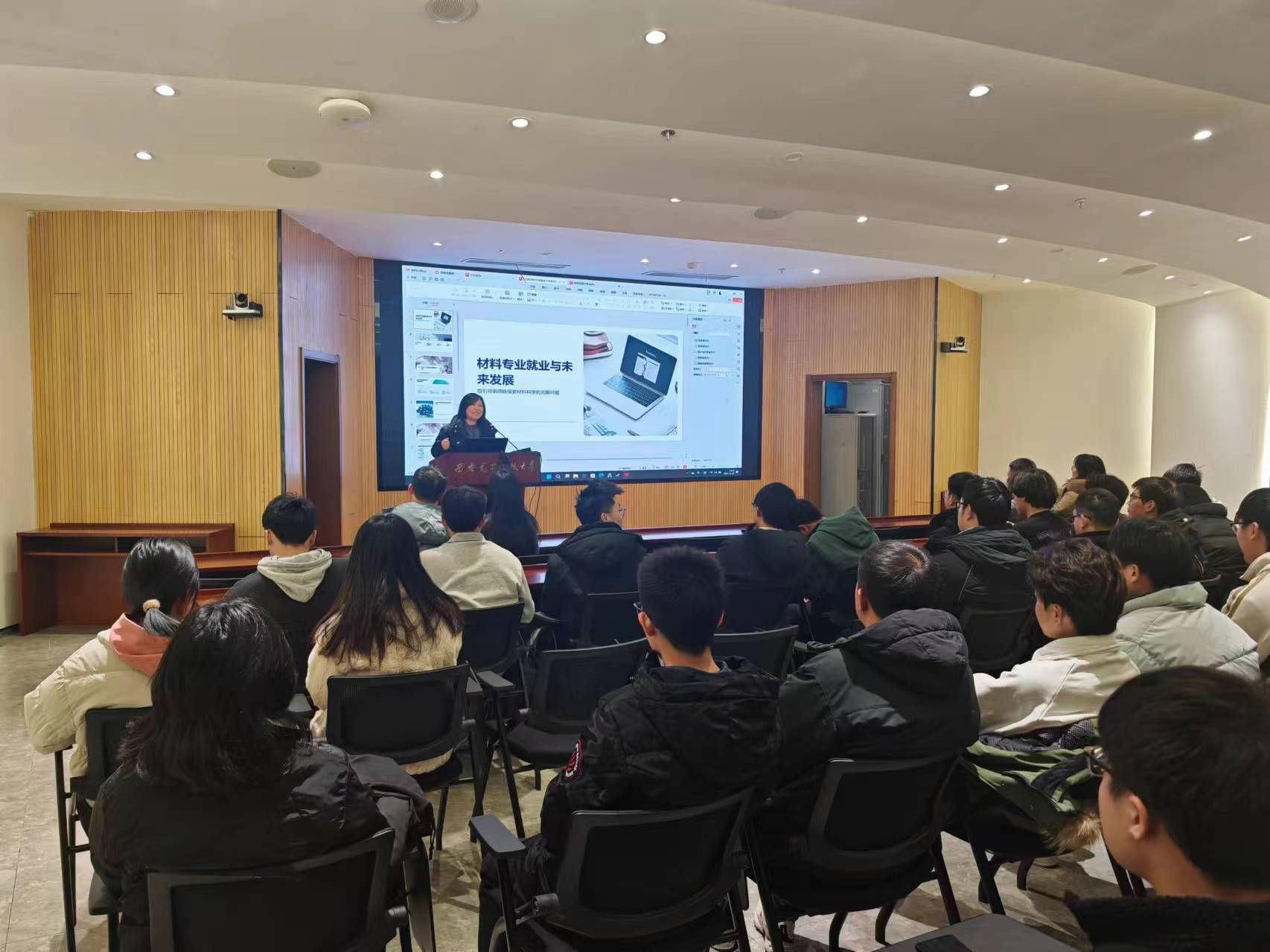 为帮助学生增强专业自信,明确个人职业目标,12月22日晚七点,材料学院2217012班在南校区会议中心A101成功举办了“启航未来”职业规划班级活动。本次活动邀请到五位优秀校友——杨倩、刘治宏、刘佳秀、余快和陈子宁,围绕职业规划、就业选择、保研升学等主题进行了分享报告。班主任李桂芳、辅导员张闻功及2022级材料专业本科生参加了此次活动。