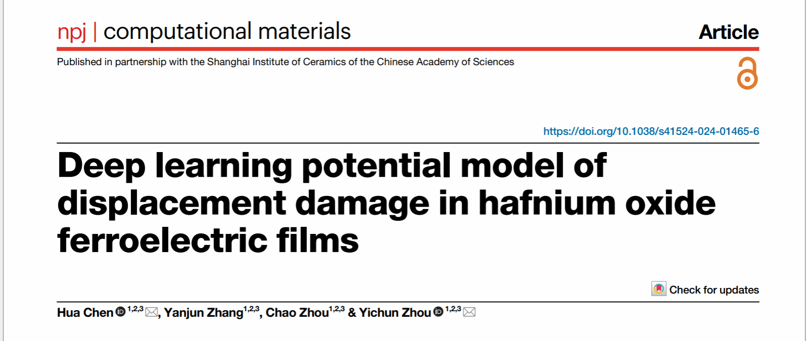 这一成果发表在一区期刊《npj Computational Materials》(影响因子:11.5)上,题为“A model for studying displacement damage in irradiated HfO2 ferroelectric thin films”。文章的第一通讯单位为h漫