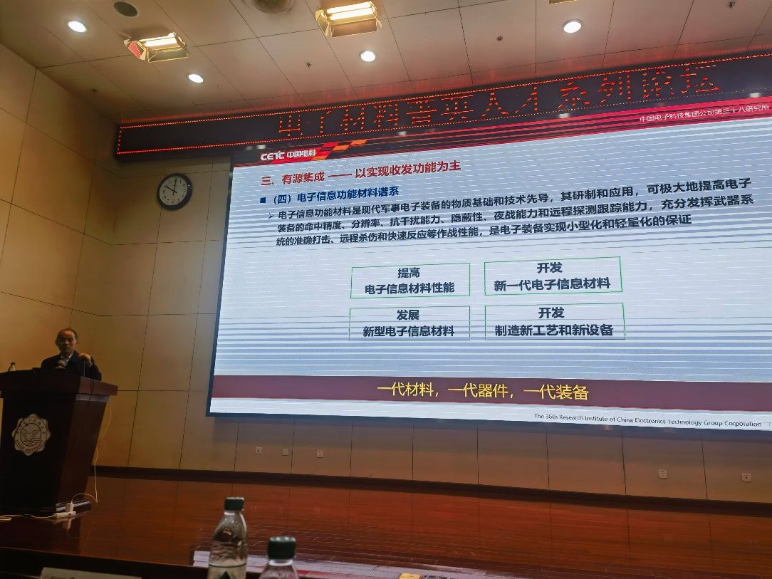 戴研究员指出结合延续摩尔和超越摩尔、采用3D集成、更高性能且更低成本的微系统发展方向,并介绍了射频微系统高频宽带化、硬件智能化、超集成化以及低成本化的发展需求及其技术途径。在介绍有源集成时,戴研究员指出集成电路面临的物理、功耗及工艺三大极限,其核心挑战是如何实现革命性的材料和器件创新。并进一步以磷化铟、氮化镓、铁电材料、碳纳米管等为例,介绍了电子材料对器件和微系统性能提升的重要意义,充分论述了以“电子+材料+物理”的研发思想以及“一代材料、一代器件、一代装备”的发展历史与未来发展趋势。